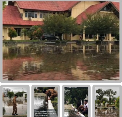 Aceh Singkil | Detikaceh.com ~ Rabu pagi, 5 Maret 2025, Wakil Bupati Aceh Singkil H. Hamzah Sulaiman, S.H., bersama sejumlah pejabat daerah terkejut mendapati genangan air di halaman Kantor Bupati Aceh Singkil. Genangan air hujan ini, disebabkan oleh saluran pembuangan yang tersumbat sehingga mengganggu aktivitas dan kenyamanan di area kantor pemerintahan.