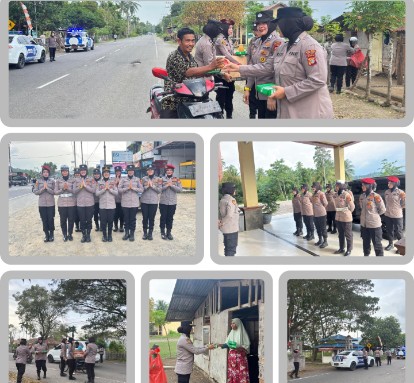 Dengan penuh kehangatan, para Polwan turun langsung ke jalan membagikan takjil kepada pengendara dan pejalan kaki yang melintas.