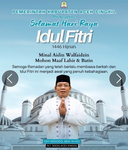Selamat Idul Fitri 1446 H, semoga menjadi awal yang indah untuk menyatukan hati dan memperkokoh persatuan. Salam hormat dari Pemerintah Kabupaten Aceh Singkil.[]