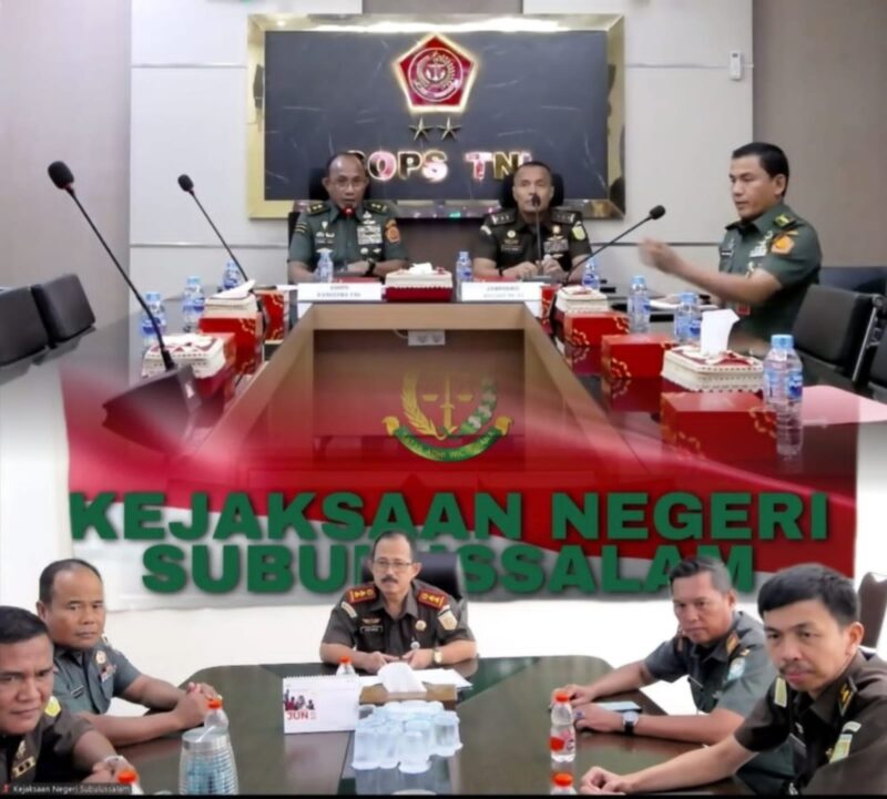 SUBULUSSALAM | detikaceh.com. Dalam rangka memperkuat sinergi antara Tentara Nasional Indonesia (TNI) dan Kejaksaan Republik Indonesia dalam bidang penegakan hukum, Komando Distrik Militer (Kodim) 0118/Subulussalam mengikuti video conference (vidcon) nasional yang diselenggarakan oleh Markas Besar TNI bekerja sama dengan Jaksa Agung Muda Pidana Militer (JAM Pidmil) Kejaksaan Agung RI, Dr. M. Ali Ridho.