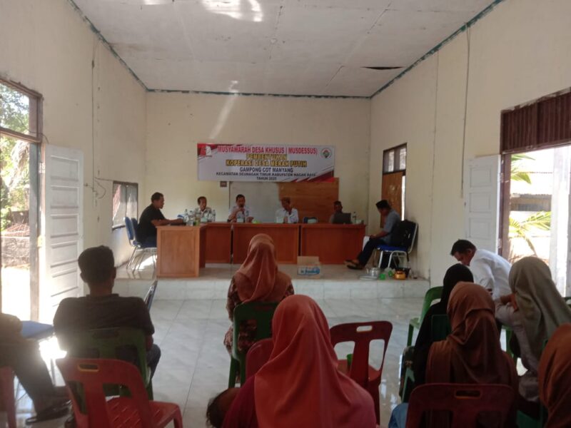 Suka Makmue : Pemerintah Gampong Cot Manyang Kecamatan Seunagan Timur Kabupaten Nagan Raya Provinsi Aceh resmi melaksanakan kegiatan Musyawarah Desa Khusus ( Mudesus) Dalam Rangka pembentukan Koperasi Merah Putih ( KMP )