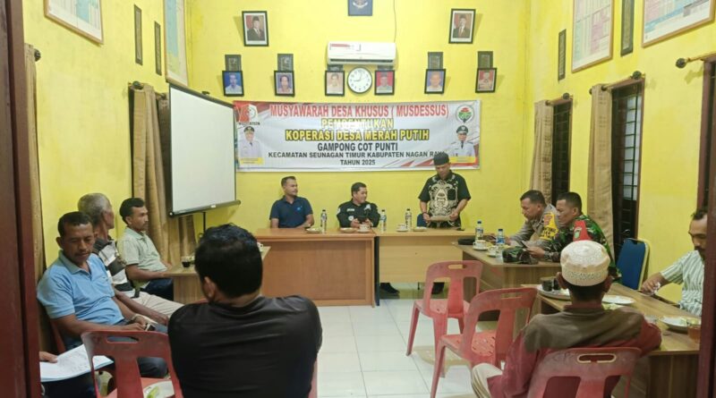 Faisal juga menambahkan. Setelah Musdessus selesai dilaksanakan, acara dilanjut dengan Rapat Pembentukan Struktur Pengurus Koperasi Merah Putih ( KMP ) Gampong Cot Punti yang Diikuti masyarakat desa dan dipimpin oleh Sekretaris Desa. Tutupnya.