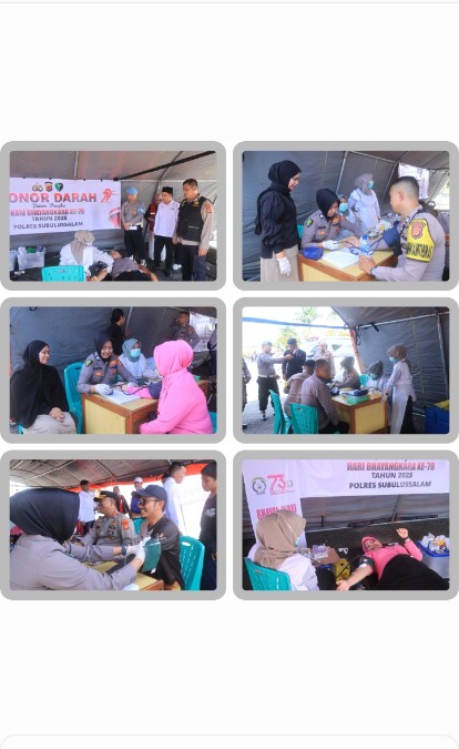 Kapolres Subulussalam menyampaikan bahwa kegiatan donor darah ini tidak hanya sebagai bentuk peringatan Hari Bhayangkara, namun juga sebagai wujud nyata kepedulian Polri terhadap sesama.