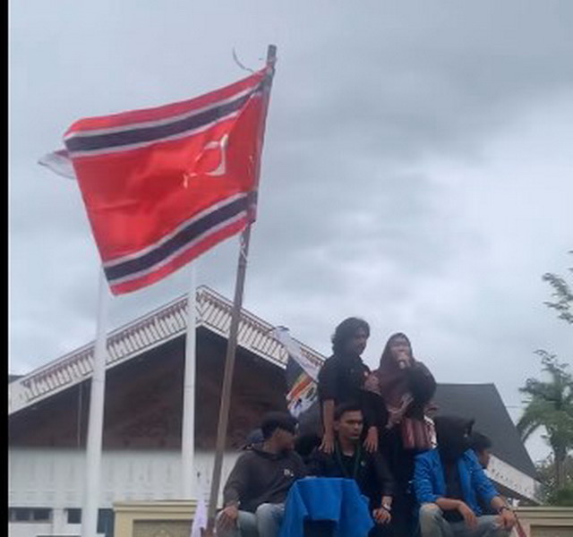 Aksi Demonstrasi di Depan DPRA Aceh Diwarnai Pengibaran Bendera Bintang Bulan