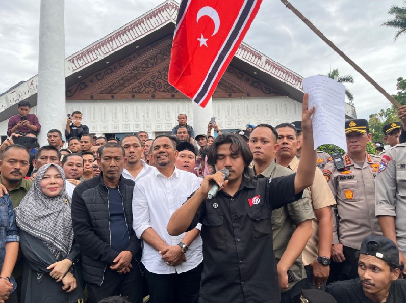 “Aku minta satu lagi, pisah aja Aceh sama pusat, tulis biar aku teken,” ucap Zulfadhli di depan pengunjuk rasa, yang disambut riuh massa.