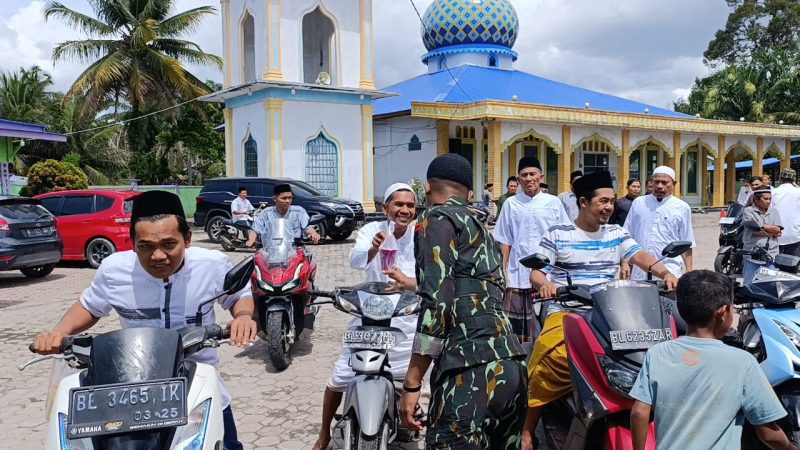 Subulussalam – Sikap humanis kembali diperlihatkan oleh AKP Jaya Putra, S.H., Danki 2 Batalyon C Pelopor Satuan Brimob Polda Aceh, melalui program rutinnya yang dikenal dengan Jum’at Berkah. Pada Jumat (14/11/2025), personel Kompi 2 Batalyon C kembali membagikan minuman jus buah kepada para jamaah usai menunaikan Sholat Jumat di Masjid As-Saqanah, Desa Tangga Besi, Kecamatan Simpang Kiri, Kota Subulussalam.