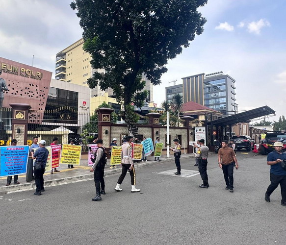 Jakarta | Korban pencurian yang disuruh penyidik Polsek Pancur Batu Brigadir Shinto Zelmana Sembiring menangkap dan mengamankan pelaku pencurian melakukan aksi Demo di Mabes Polri pada Jumat,12 Desember 2025 siang.