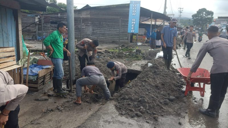Kegiatan tersebut dilakukan sebagai bentuk kepedulian Polri terhadap kondisi lingkungan dan keselamatan masyarakat, khususnya untuk mengantisipasi terjadinya genangan air maupun banjir susulan akibat tersumbatnya aliran parit di sepanjang jalan desa. Personel gabungan tampak bahu-membahu membersihkan lumpur, sampah, serta material lain yang menghambat aliran air.