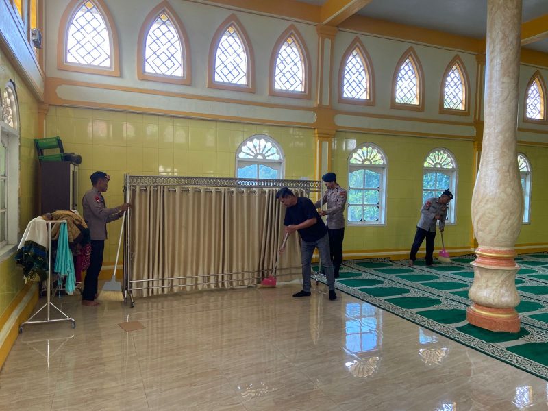 Bener Meriah : Personel Satuan Brimob Polda Aceh melalui Satgas Aman Nusa II BKO Polres Bener Meriah dan Aceh Tengah kembali menunjukkan kepedulian sosial kepada masyarakat melalui kegiatan Jum’at Berkah dengan melaksanakan aksi bersih-bersih masjid di sejumlah wilayah, Jumat,(09/01/2026).