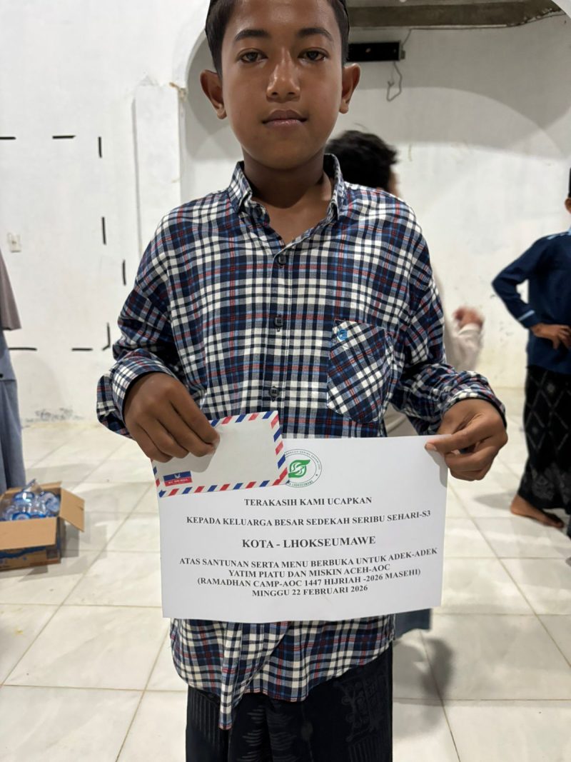Komunitas S3 Aceh Utara Salurkan Santunan dan Menu Berbuka untuk Yatim Piatu di Ramadhan Camp AOC 1447 H